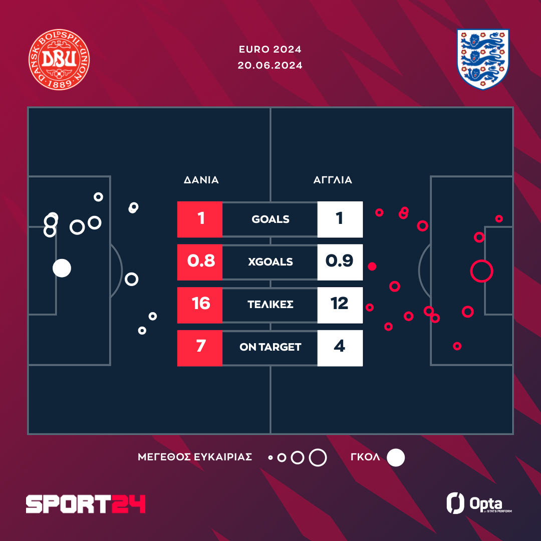 Στο φινάλε οι Δανοί ήταν εκείνοι που απείλησαν περισσότερο, όμως το 1-1 που βόλεψε περισσότερο την Αγγλία έμεινε μέχρι το τέλος.