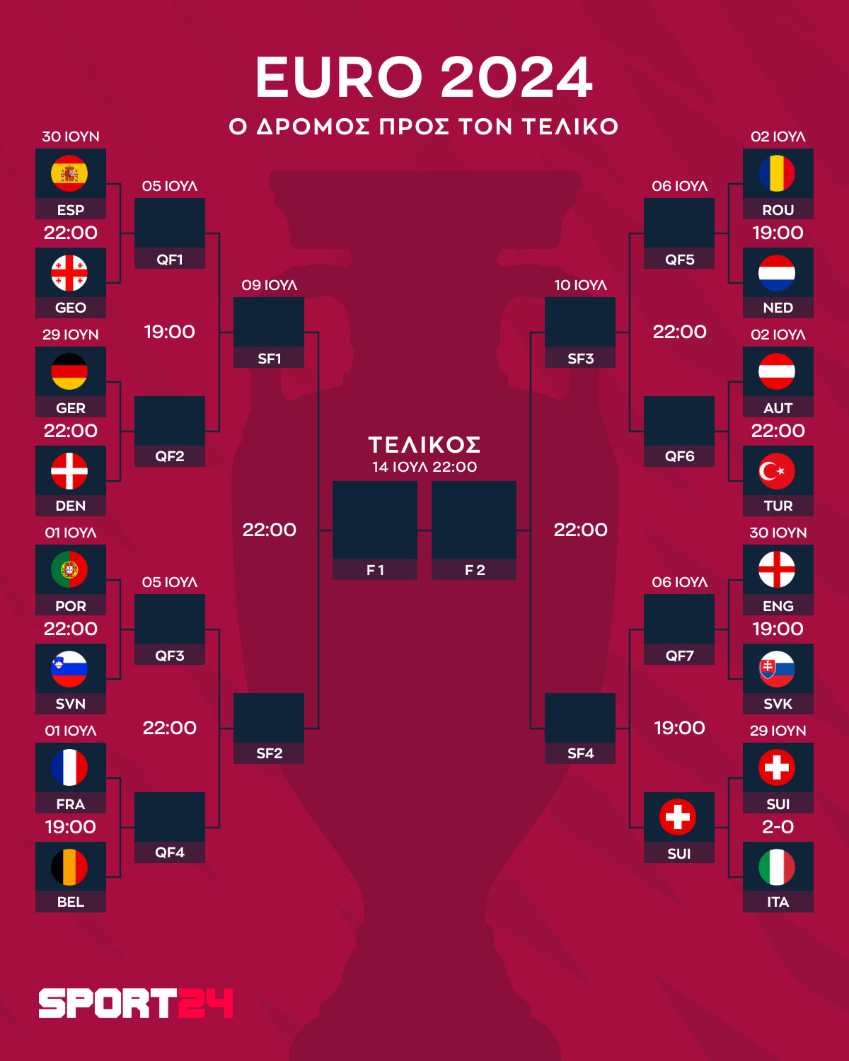 Το πρόγραμμα και οι διασταυρώσεις μέχρι τον τελικό του Euro 2024