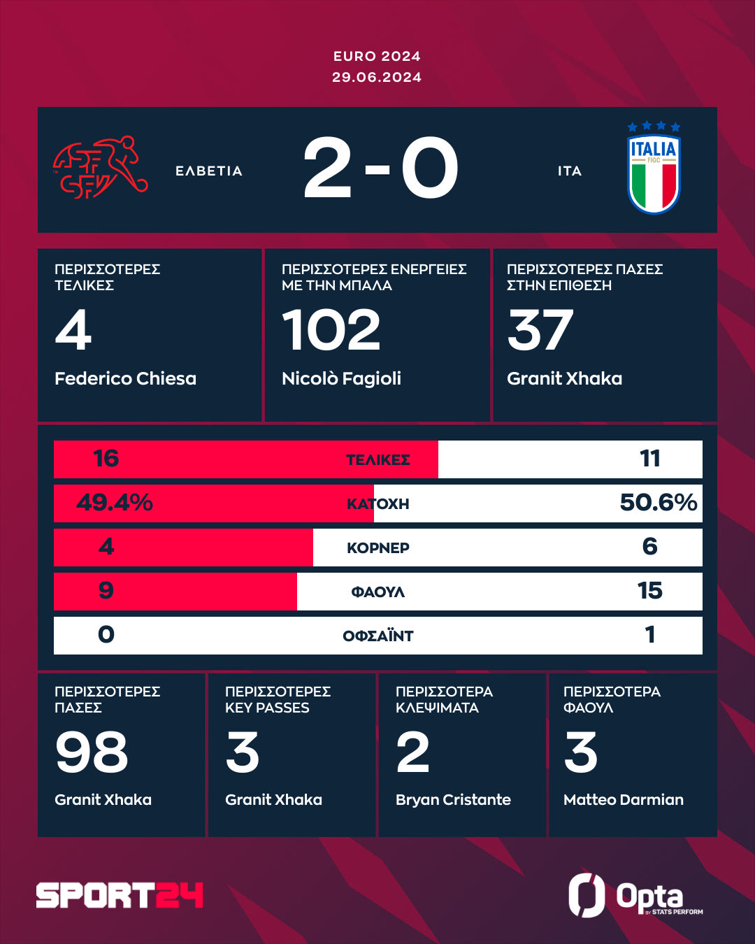 Τα στατιστικά και οι καλύτερες επιδόσεις του Ελβετία - Ιταλία