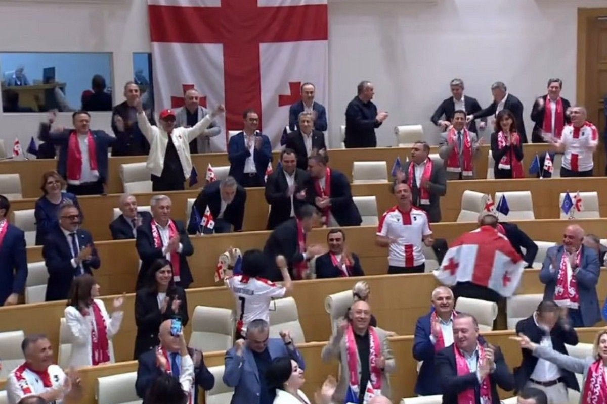 Η πρόκριση της Γεωργίας στη νοκ-άουτ φάση του Euro 2024 εκτόξευσε στα ύψη τον ενθουσιασμό στη χώρα, με το Κοινοβούλιο να ζει μεγάλες στιγμές με πολιτικούς να φορούν φανέλες και κασκόλ στα χρώματα του αντιπροσωπευτικού συγκροτήματος.