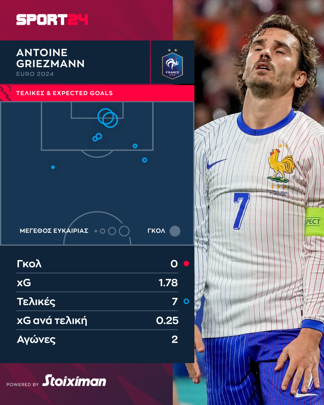 Συνολικά στο τουρνουά σε αυτά τα δύο παιχνίδια έχει επτά τελικές, οι οποίες έχουν “αξία” 1.78xG. Ωστόσο, το γκολ ακόμη δεν έχει έρθει, παρά τις ευκαιρίες του.