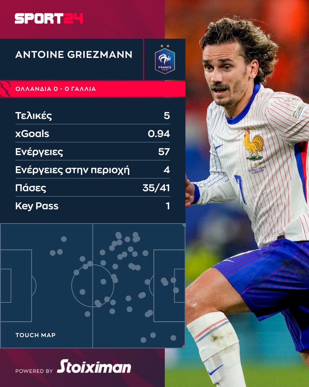 Ο Γκριεζμάν είναι από τους πιο απειλητικούς παίκτες της Γαλλίας σε αυτά τα δύο πρώτα παιχνίδια.