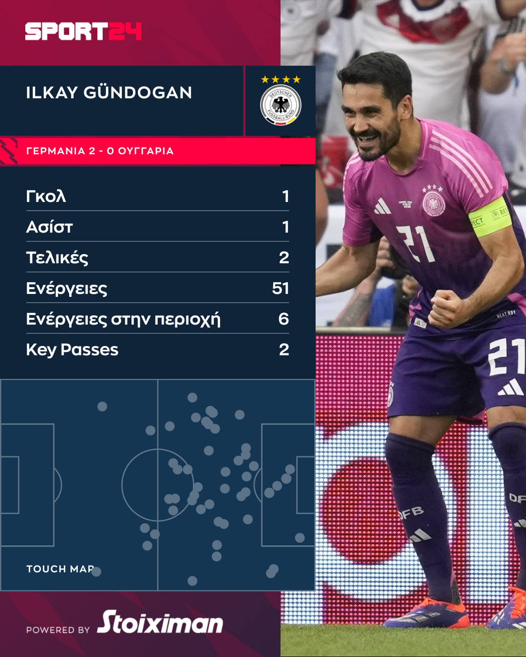 Ο Γκιντογκάν ήταν ουσιαστικός και απόλυτος MVP στη νίκη της Γερμανίας επί της Ουγγαρίας (2-0), ενώ ο Κρόος έδωσε ακόμα μία εκπληκτική παράσταση.