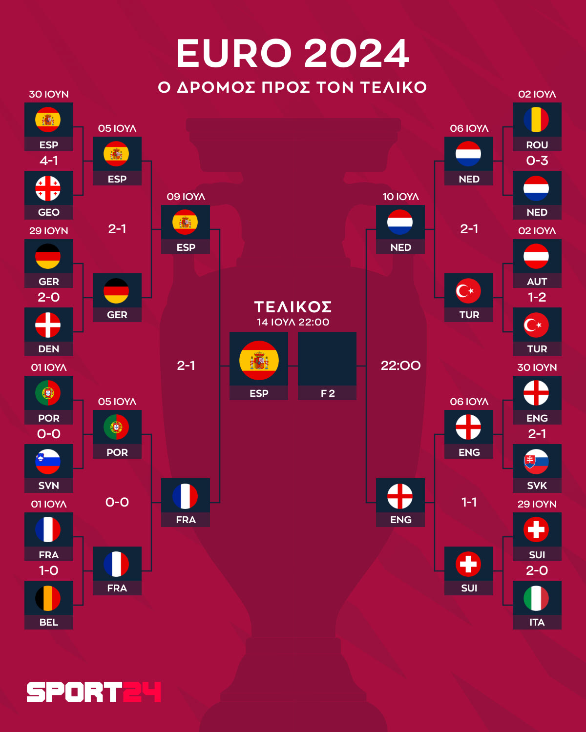 Euro 2024: Η Ισπανία περιμένει Αγγλία ή Ολλανδία, η μέρα και η ώρα του τελικού