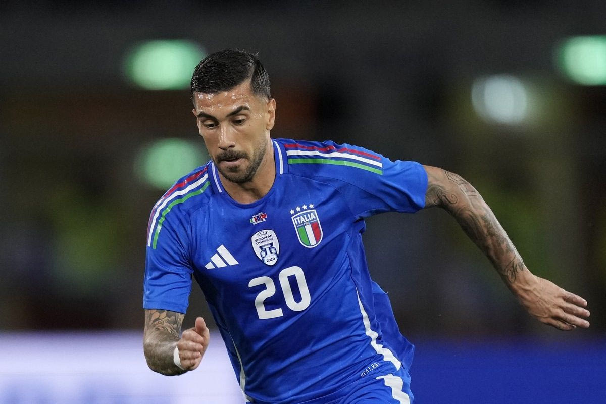 Italy's Mattia Zaccagni controls the ball during the international friendly soccer match between Italy and Turkey at the Renato Dall'Ara stadium in Bologna, Italy, Tuesday, June 4, 2024. (AP Photo/Antonio Calanni)