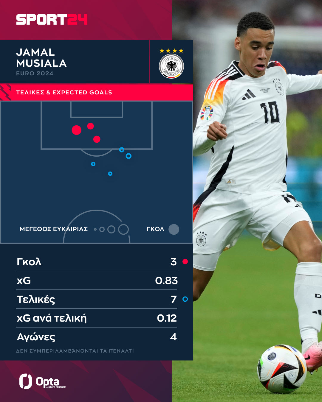 Euro 2024: Ο Μουσιάλα συνεχίζει να λάμπει για τη Γερμανία με εντυπωσιακά ποσοστά ευστοχίας στις τελικές