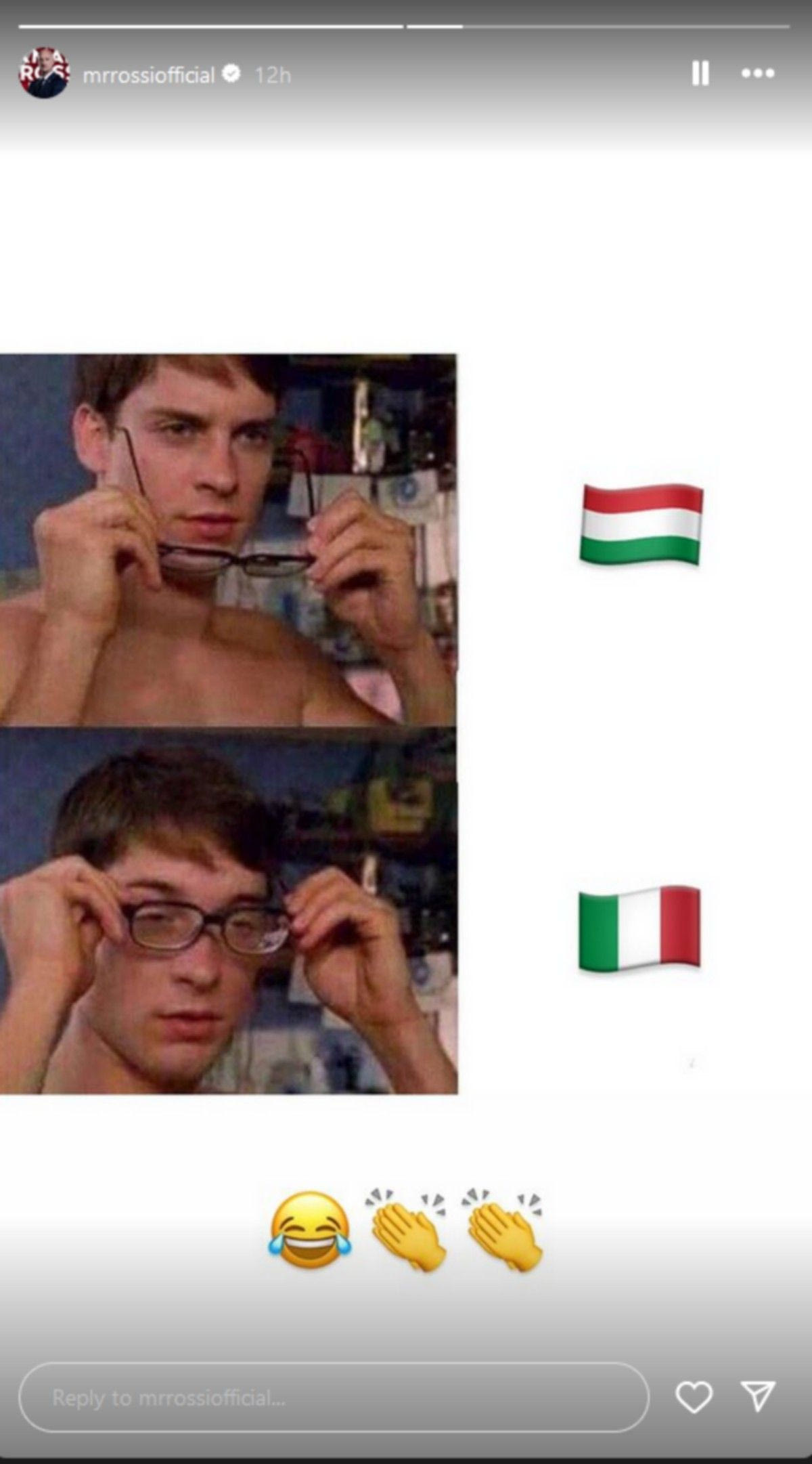 Αυτός ήταν μία πετυχημένη χιουμοριστική ανάρτηση στο Instagram με πρωταγωνιστή τον ηθοποιό Τόμπι Μαγκουάιρ (γνωστός στο κοινό ως ο κινηματογραφικός Spiderman), όπου στη μία φωτογραφία δεν φοράει τα γυαλιά του και βλέπει την ουγγρική σημαία και στην άλλη τα βάζει, για να δει την ιταλική.