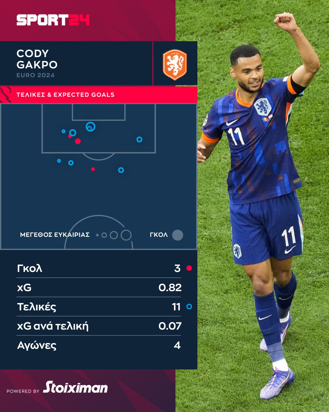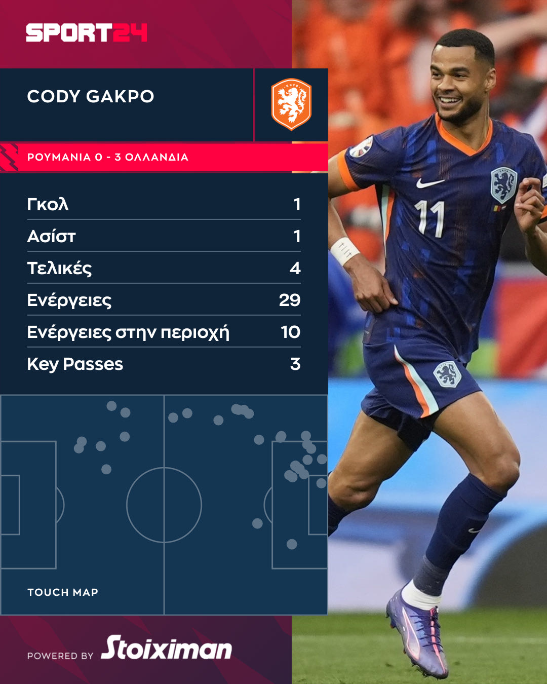 Η Ολλανδία ήταν εντυπωσιακή κόντρα στη Ρουμανία (3-0), με τον Κόντι Χάκπο να είναι μπροστάρης. Ο παίκτης της Λίβερπουλ κάνει εξαιρετικό τουρνουά και είναι δίκαια ο μπροστάρης των οράνιε.
