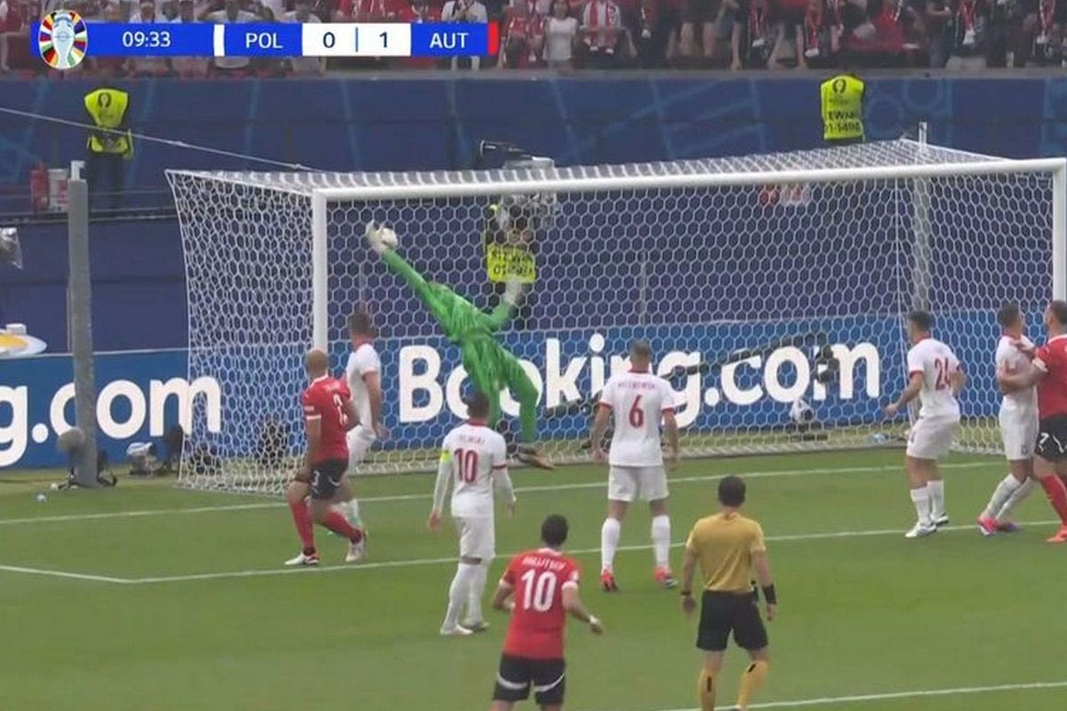 Η Αυστρία μόλις στο 9ο λεπτό του αγώνα με την Πολωνία βρήκε δίχτυα, με τον Τράουνερ να ανοίγει το σκορ για την ομάδα του με ωραία κεφαλιά.