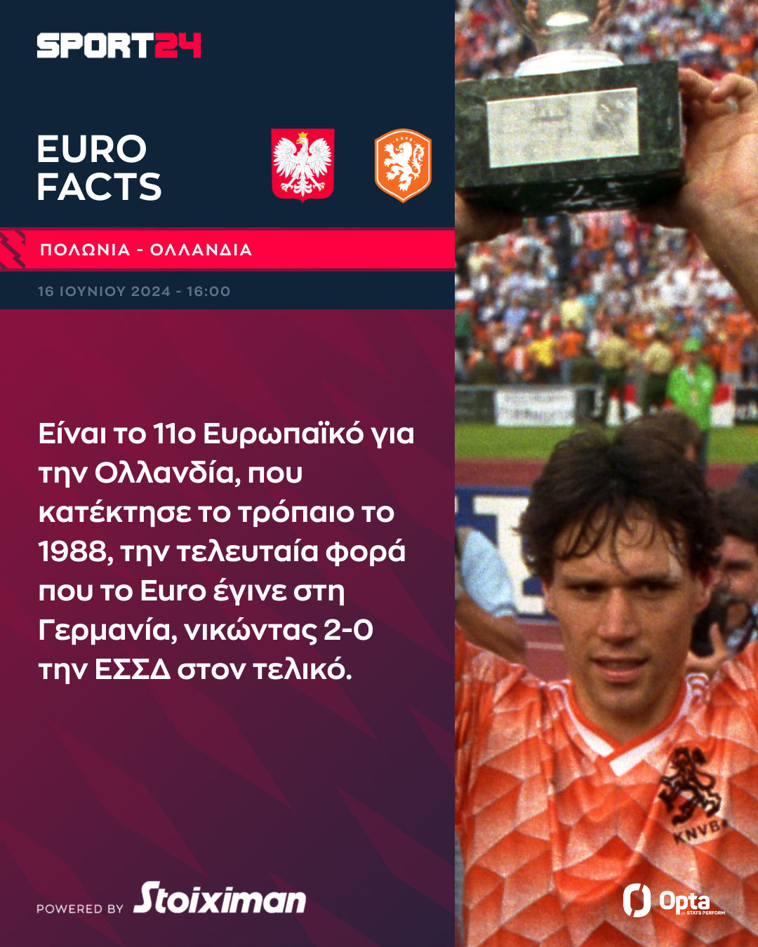 Η Ολλανδία κάνει πρεμιέρα στο Euro 2024 κόντρα στην Πολωνία και το SPORT24 σας παρουσιάζει μερικά χρήσιμα Facts ενόψει της αναμέτρησης.