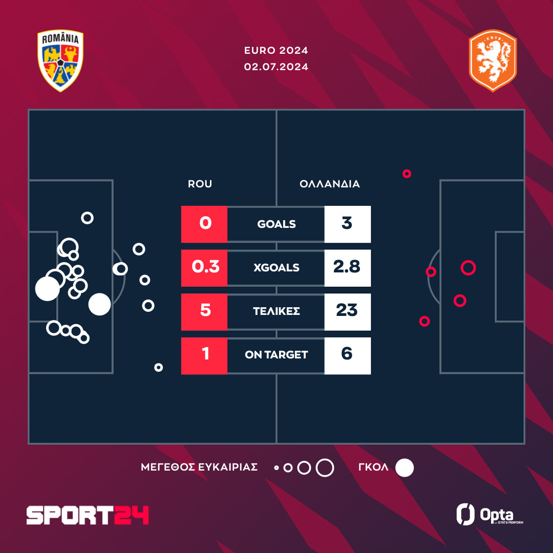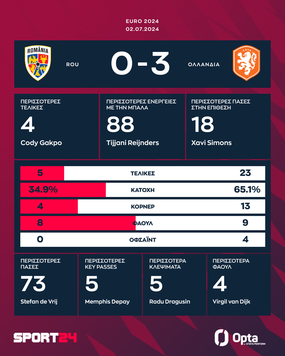 Τα στατιστικά και οι κορυφαίες επιδόσεις στην αναμέτρηση της Ρουμανίας με την Ολλανδία