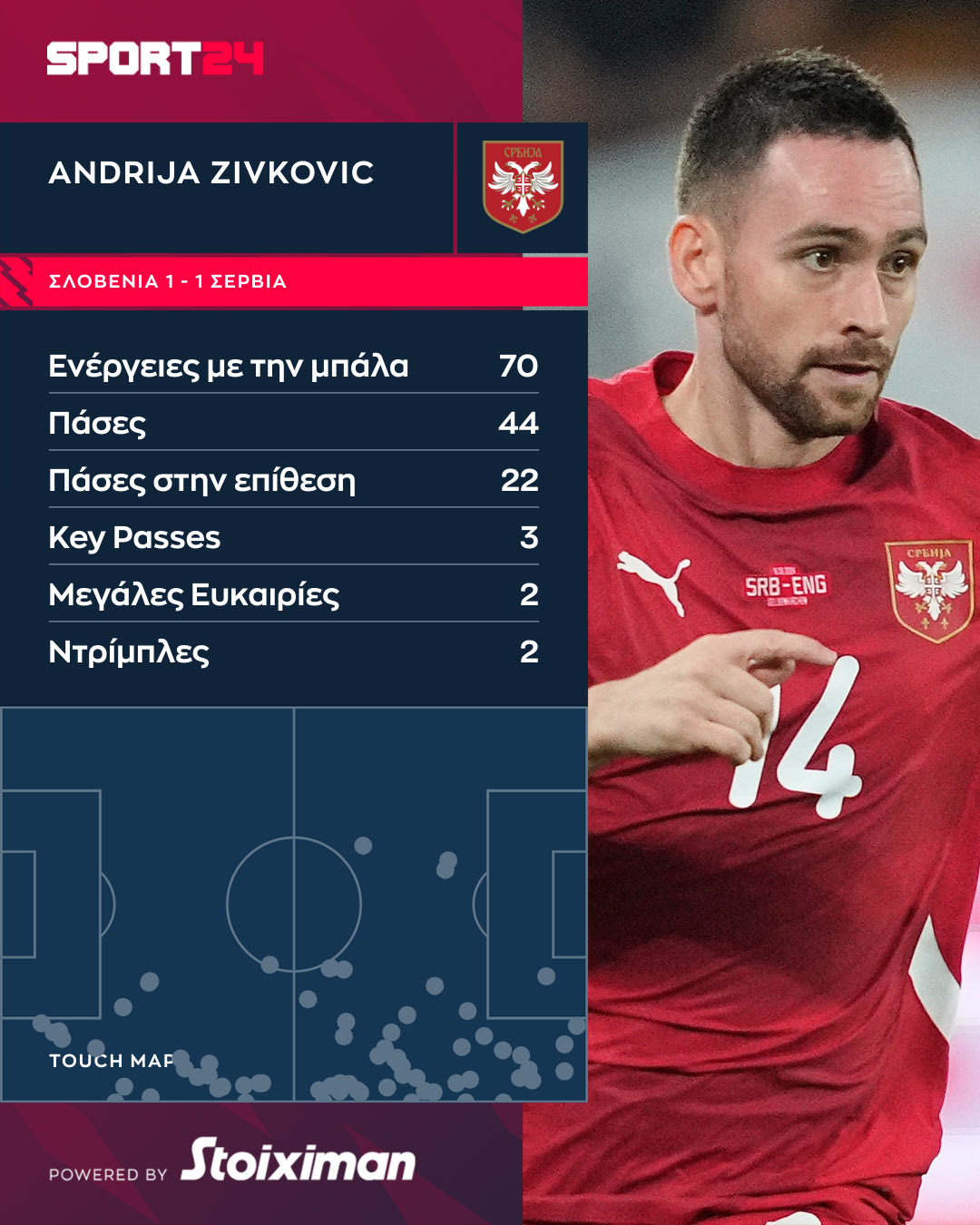 Euro 2024, Σερβία: Αγκαλιά με την Θεσσαλονικιά σύζυγό του ο Ζίβκοβιτς μετά το Σλοβενία – Σερβία