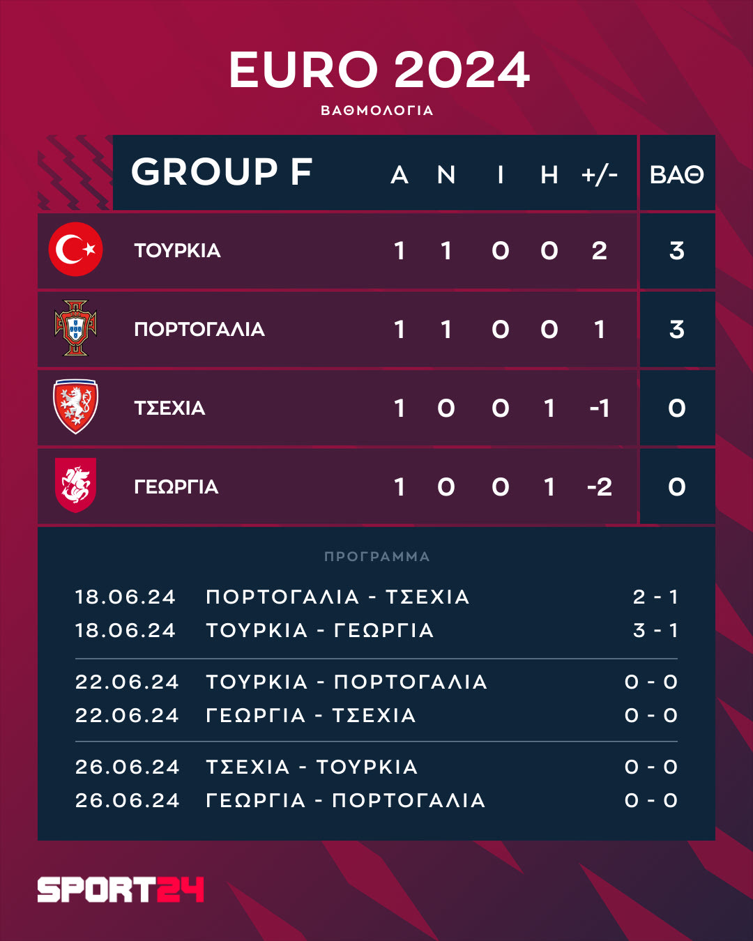 Euro 2024: Τα αποτελέσματα και η βαθμολογία του 6ου ομίλου μετά τη νίκη της Πορτογαλίας