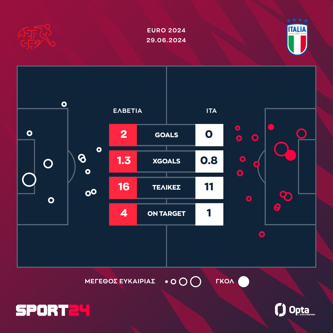 Euro 2024: Τα νούμερα που δείχνουν την κατωτερότητα της Ιταλίας και τον δίκαιο αποκλεισμό από τους Ελβετούς