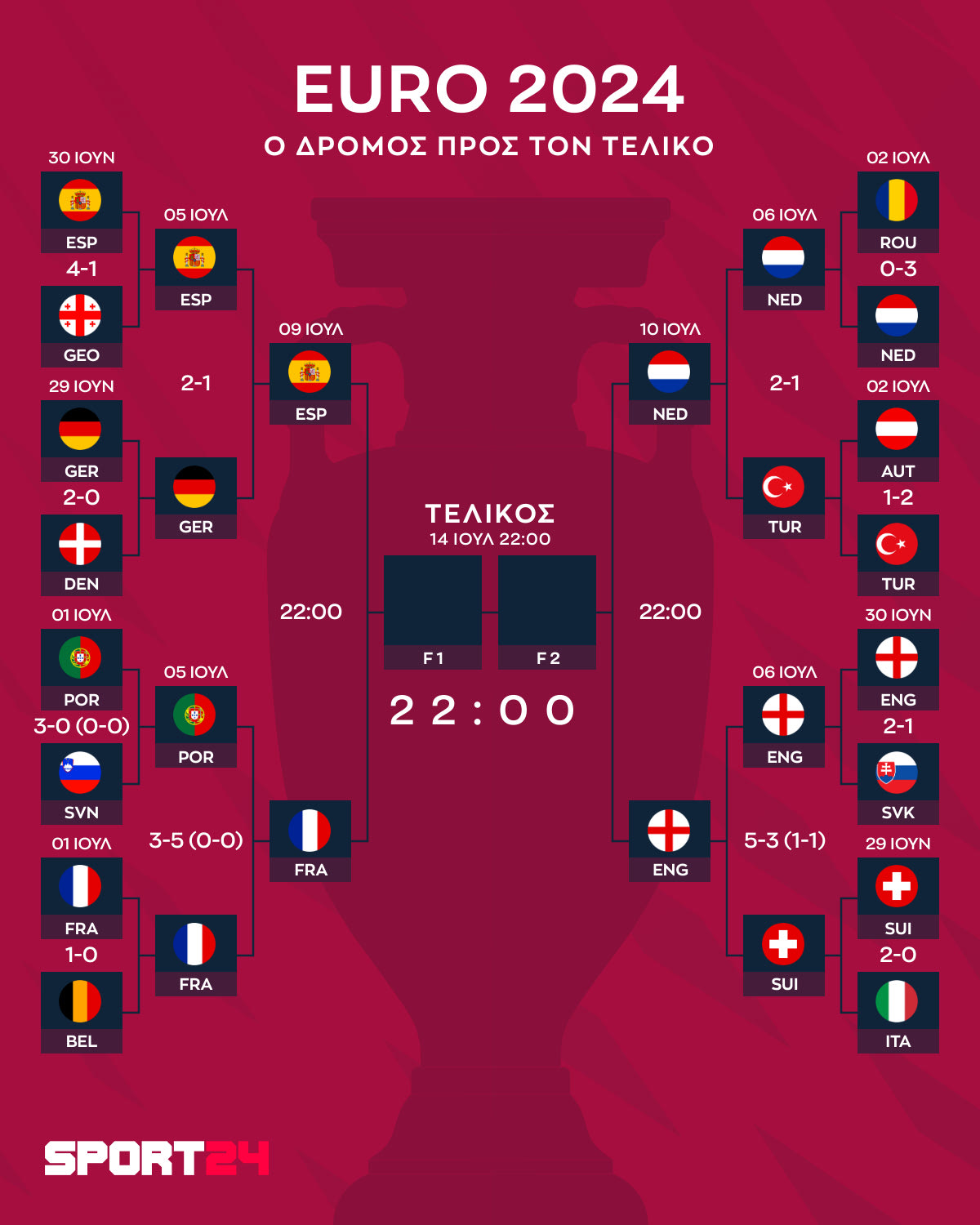 Euro 2024: Τα ζευγάρια των ημιτελικών και το πρόγραμμα μέχρι τον τελικό