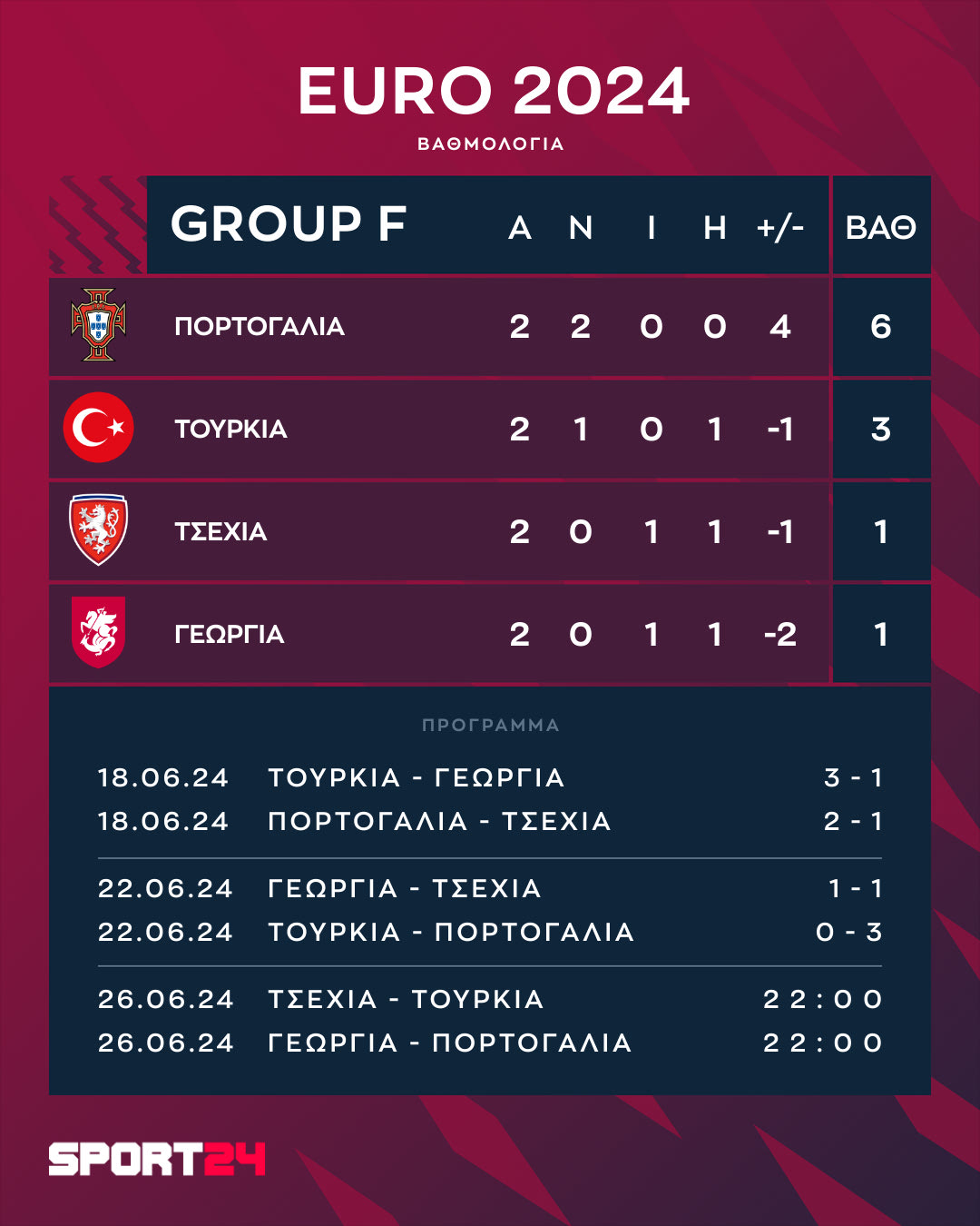 Η εθνική Πορτογαλίας βροντοφωνάζει “παρούσα” και είναι έτοιμη για μεγάλα πράγματα στα γήπεδα της Γερμανίας! Μετά από τη νικηφόρα πρεμιέρα όπου έκανε την ανατροπή στο 90+2′ κόντρα στην Τσεχία (2-1), η ομάδα του Ρομπέρτο Μαρτίνεθ πήρε φόρα και διέλυσε με χαρακτηριστική ευκολία την Τουρκία το Σάββατο (22/6), για να φτάσει στο 3-0 για τη δεύτερη αγωνιστική του 6ου ομίλου και να προκριθεί στους “16” του Euro 2024 ως πρώτη.