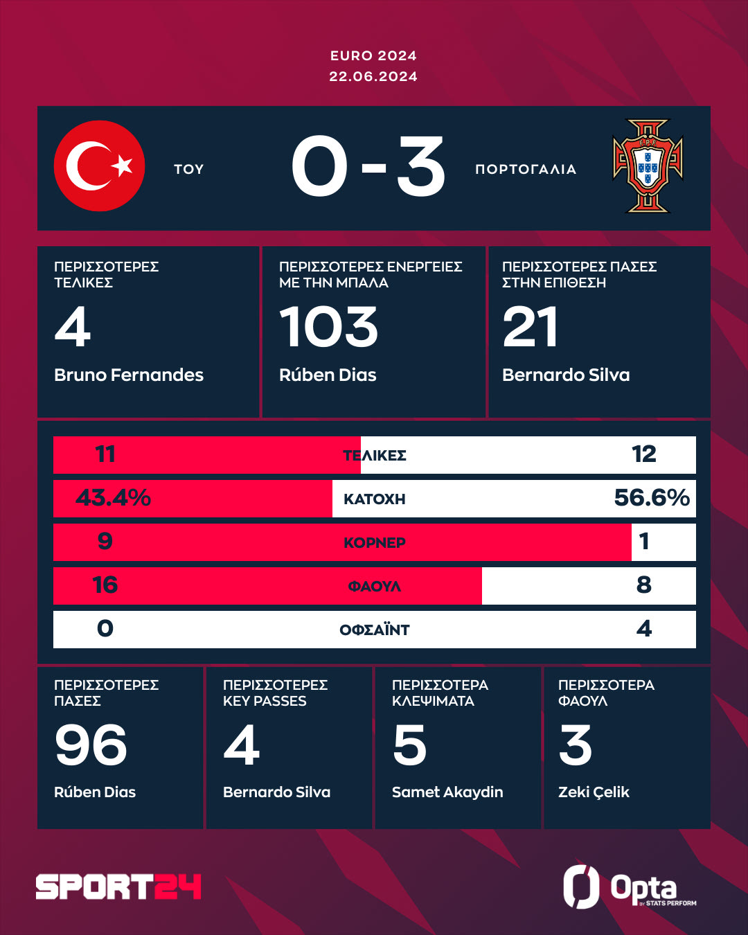 Euro 2024, Τουρκία – Πορτογαλία 0-3: Πρώτη και καλύτερη στον 6ο όμιλο με επιβλητική τριάρα
