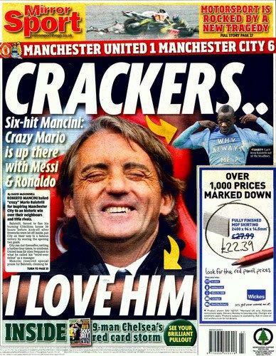 Τι κι αν ο Ρομπέρτο Μαντσίνι προσπαθούσε να κρατήσει χαμηλούς τους τόνους λέγοντας ότι “πήραμε τρεις βαθμούς και όχι έξι”. Το κοντέρ είχε γράψει. Και κάθε φορά που η μπάλα τίναζε τα δίχτυα του Ισπανού γκολκίπερ Νταβίδ Ντε Χέα,, οι οπαδοί των “μπλε” γκάριζαν: “Η πόλη είναι δική μας”.