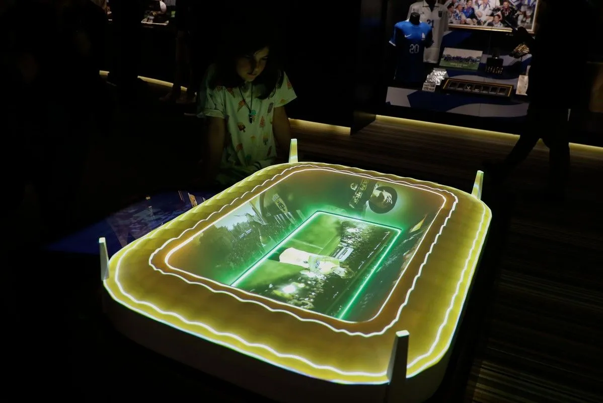 Σε κεντρική θέση υπάρχει ένα έκθεμα που δείχνει το γήπεδο. Εκεί μέσα από τα “φώτα”, απεικονίζονται φωτογραφίες αλλά και ιστορίες σταθμοί. Τόσο του Νίκος Γκούμας, όσο και του νέου γηπέδου.