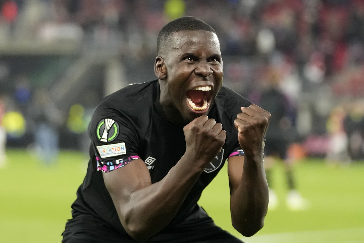 Ο Κουρτ Ζουμά πανηγυρίζει την πρόκριση της Γουέστ Χαμ στον τελικό του Conference League © 2023 Peter Dejong / AP IMAGES