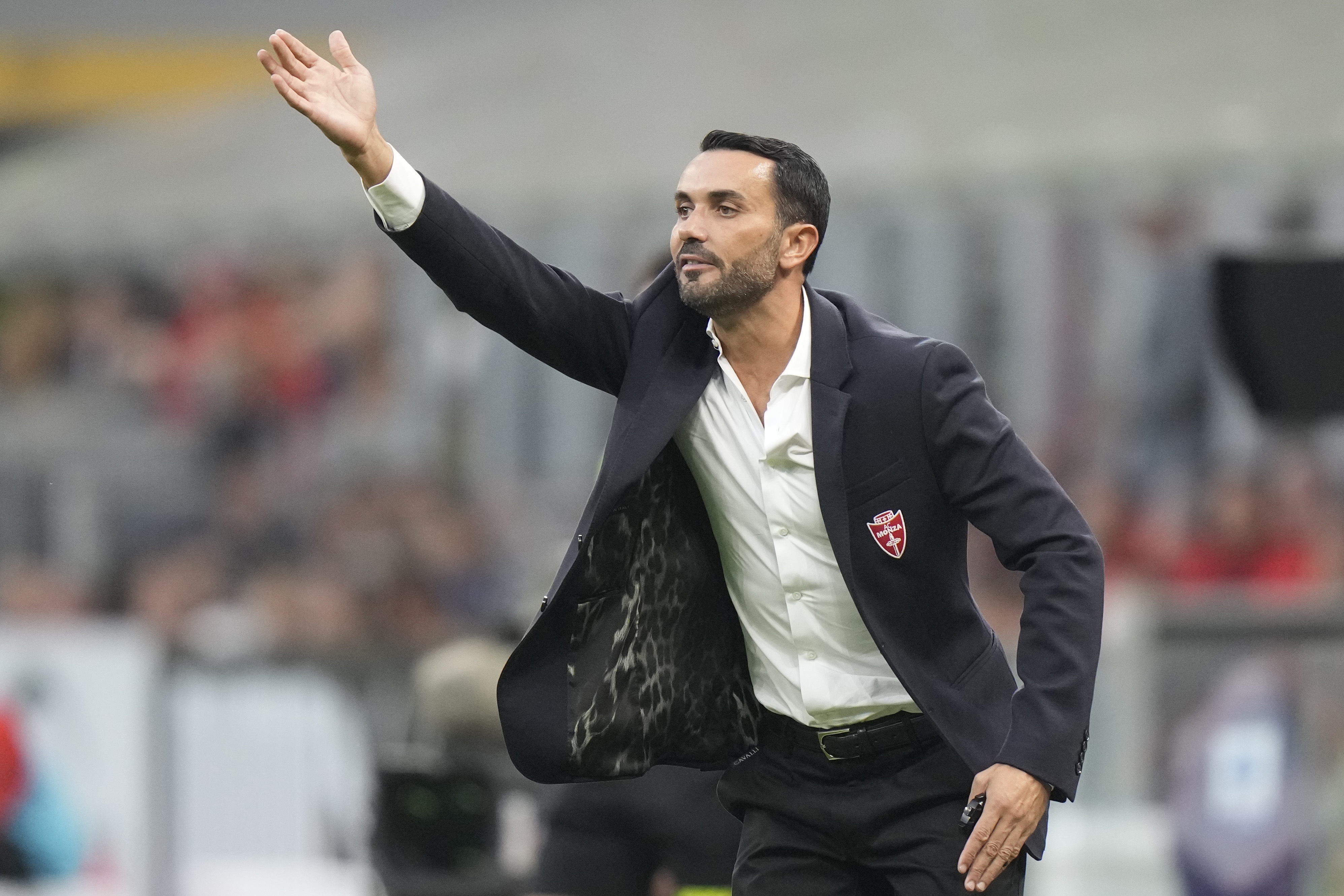 Monza's head coach Raffaele Palladino gestures during a Serie A soccer match between AC Milan and Monza, at the San Siro stadium in Milan, Italy, Saturday, Oct. 22, 2022. (AP Photo/Luca Bruno) AP