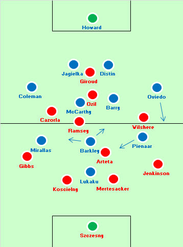 Για δύο λόγους η Άρσεναλ είναι καλύτερη στις διεισδύσεις και στους συνδυασμούς. Έχει επιτελικούς μέσους που απλά είναι πιο δημιουργικοί και τεχνικοί από αυτούς της Έβερτον. Ο Μπάρκλεϊ, παρά την ποιότητά του, δεν έχει τις διεισδύσεις των Εζίλ και Καθόρλα και είναι χαρακτηριστικό πως ακόμη δεν έχει ασίστ στην Premier League.