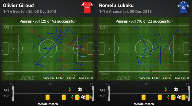 Ο δεύτερος λόγος είναι πως ο Ολιβιέ Ζιρού παίζει πιο πολύ ως στράικερ από τον Ρομελού Λουκακού. Είναι πολύ καλύτερος και πιο επικίνδυνος στην πρώτη επαφή, έτσι παίζει πιο κοντά στην άμυνα, οι συμπαίκτες του δίνουν πιο πολλές πάσες και το παιχνίδι της Άρσεναλ είναι λιγότερο προβλέψιμο.