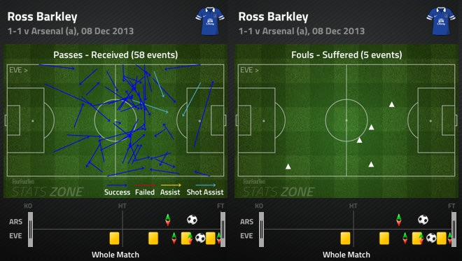 Για ένα ακόμη παιχνίδι έκανε σπουδαία εμφάνιση για την Έβερτον ο Ρος Μπάρκλεϊ. Έπαιξε στην κορυφή του τριγώνου στο κέντρο και πήρε καλές πάσες από Μπάρι και ΜακΚάρθι που έπαιζαν πίσω του.