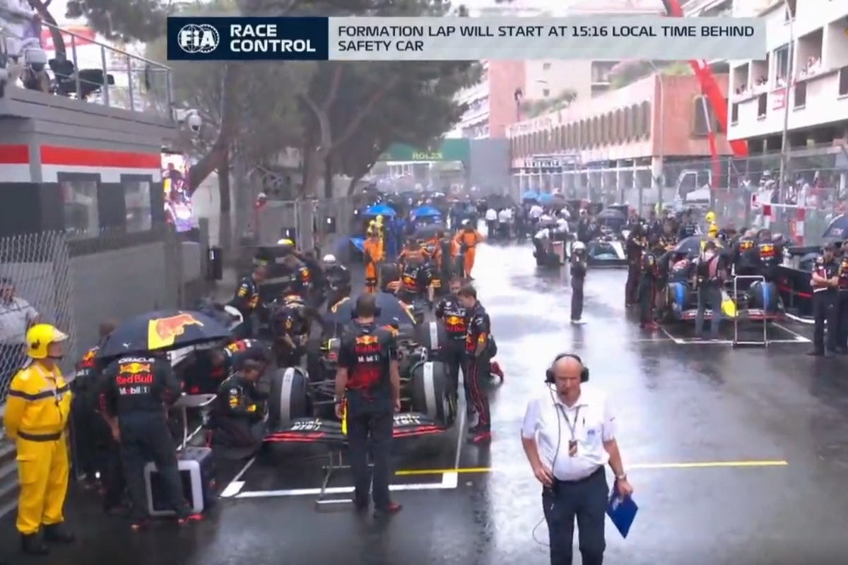 Καθυστέρηση υπήρξε πριν από την έναρξη του GP του Μονακό, καθώς η βροχή δημιούργησε αναμπουμπούλα στο grid, με τους ανθρώπους των ομάδων να τρέχουν να αλλάξουν ελαστικά.