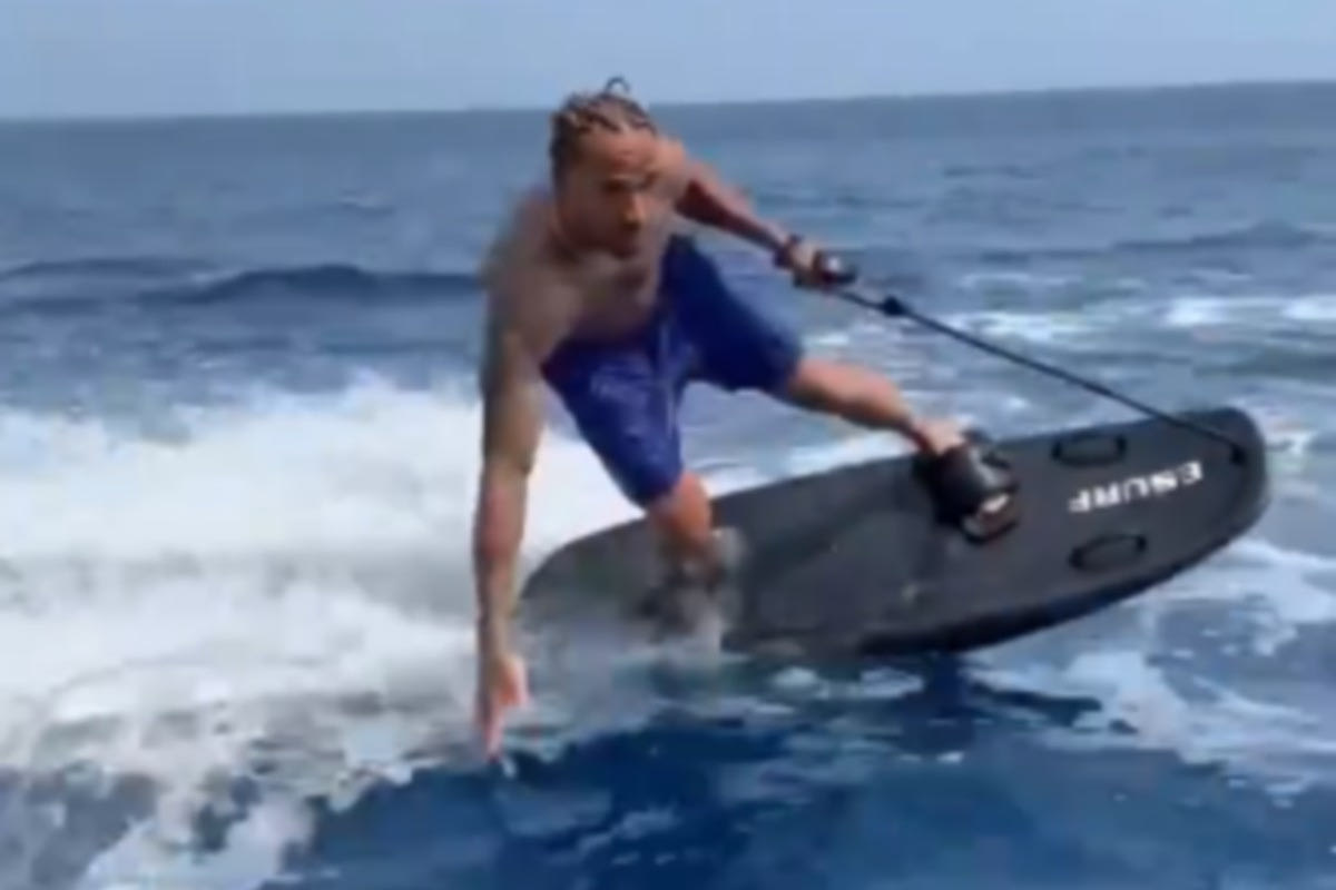 Ο Λούις Χάμιλτον εκμεταλλεύτηκε το καλοκαιρινό διάλειμμα της Formula 1, άφησε τις πίστες και το μονοθέσιο της Mercedes και έπιασε τη σανίδα του σερφ, σαρώνοντας τα κύματα.