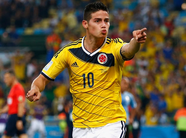 RIO DE JANEIRO, BRAZIL - JUNE 28: James Rodriguez of Colombia celebrates scoring his team's second goal and his second of the game during the 2014 FIFA World Cup Brazil round of 16 match between Colombia and Uruguay at Maracana on June 28, 2014 in Rio de Janeiro, Brazil. (Photo by Clive Rose/Getty Images)
