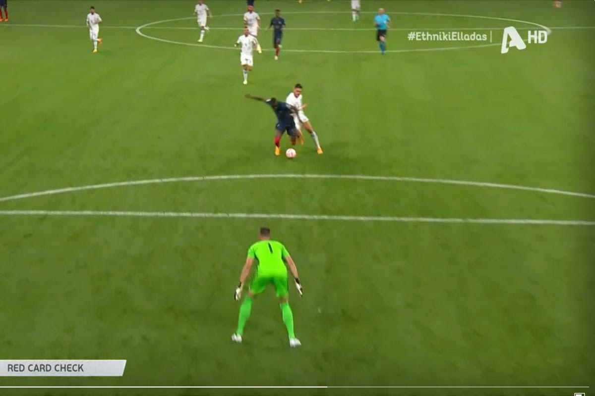 Ο Ντίνος Μαυροπάνος ήταν πρωταγωνιστής στη φάση του πέναλτι πάνω στον Γκριεζμάν αλλά λίγο αργότερα πρωταγωνίστησε σε άλλη μια φάση. Στο 69′ της αναμέτρησης οι Γάλλοι έφυγαν στην αντεπίθεση με μια κάθετη μπαλιά προς τον Κολό Μουανί.