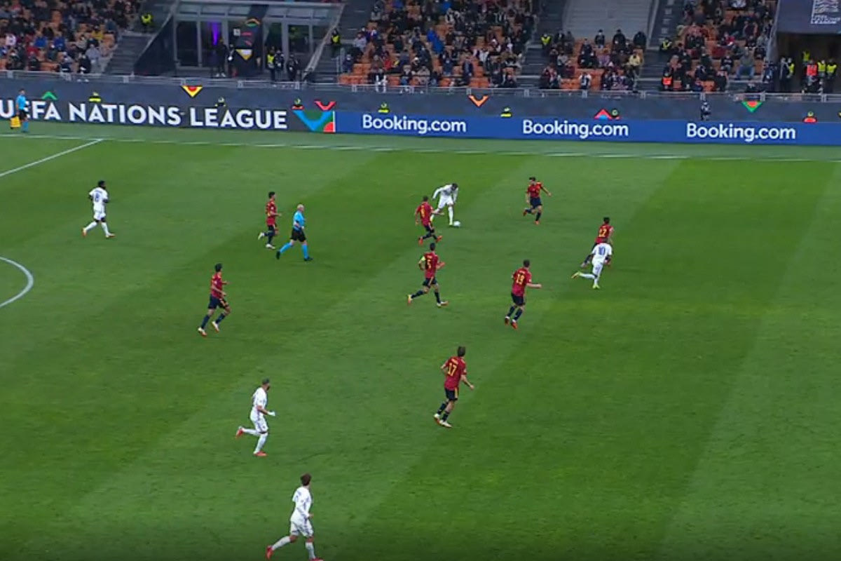 Η φάση αυτή σήκωσε αρκετή συζήτηση για το αν θα έπρεπε να μετρήσει ή όχι. Είναι αλήθεια πως ο Εμπαπέ είναι πιο μπροστά απ’ τον προτελευταίο Ισπανό παίκτη την στιγμή ο Ερναντέζ τον τροφοδοτεί. Όμως, ο VAR μέτρησε το γκολ και ο λόγος είναι ο Έρικ Γκαρθία.