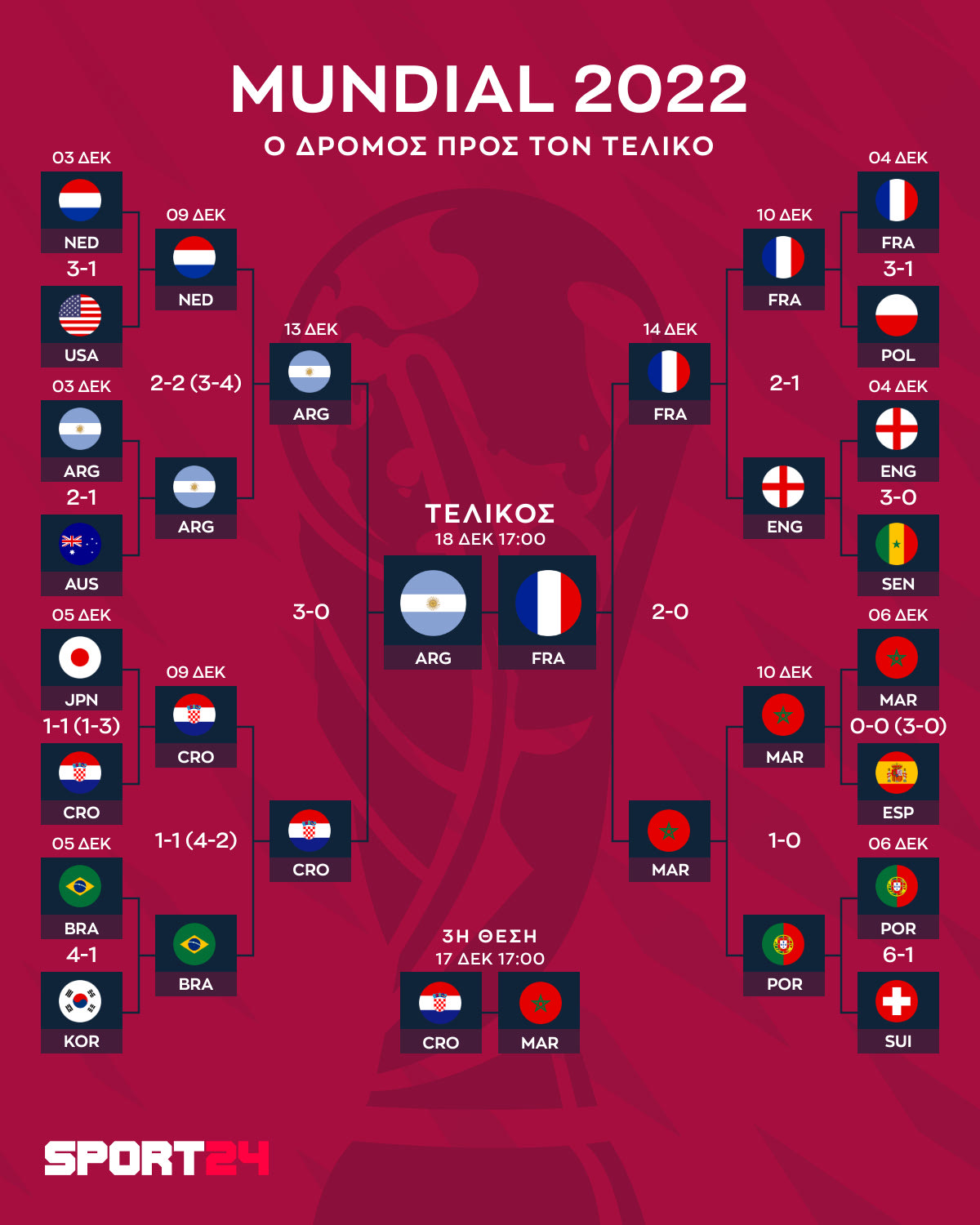 Το SPORT24 παίζει μόνο Μουντιάλ 2022 και σε πάει στο Παγκόσμιο Κύπελλο ! Δες αναλυτικα το Πρόγραμμα του Μουντιάλ και τα αποτελέσματα των αγώνων του Μουντιάλ, Παρακολούθησε το Μουντιάλ live στο Matchcenter, κάνε εγγραφή στα push notifications του SPORT24 και στο Youtube κανάλι για να ενημερώνεσαι και να μη χάνεις καμία αθλητική στιγμή!