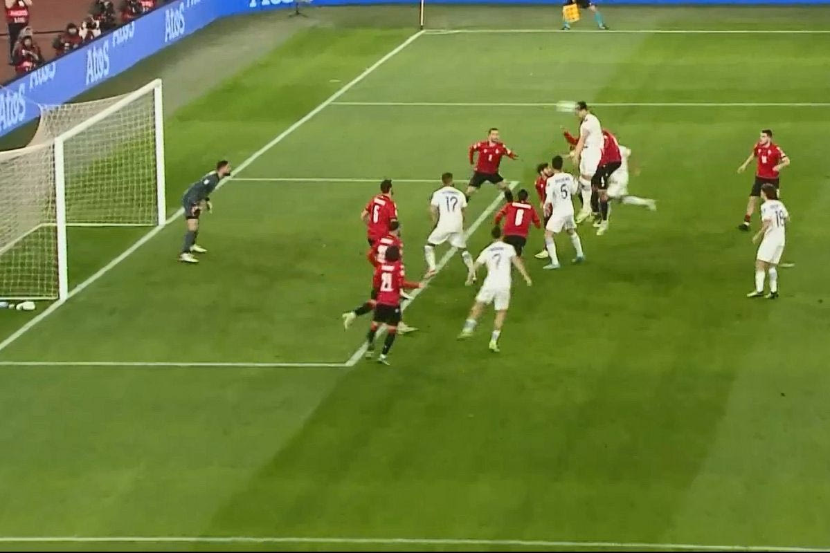 Γεωργία – Ελλάδα: Η κεφαλιά του Μαυροπάνου τράνταξε το οριζόντιο δοκάρι στο 102′