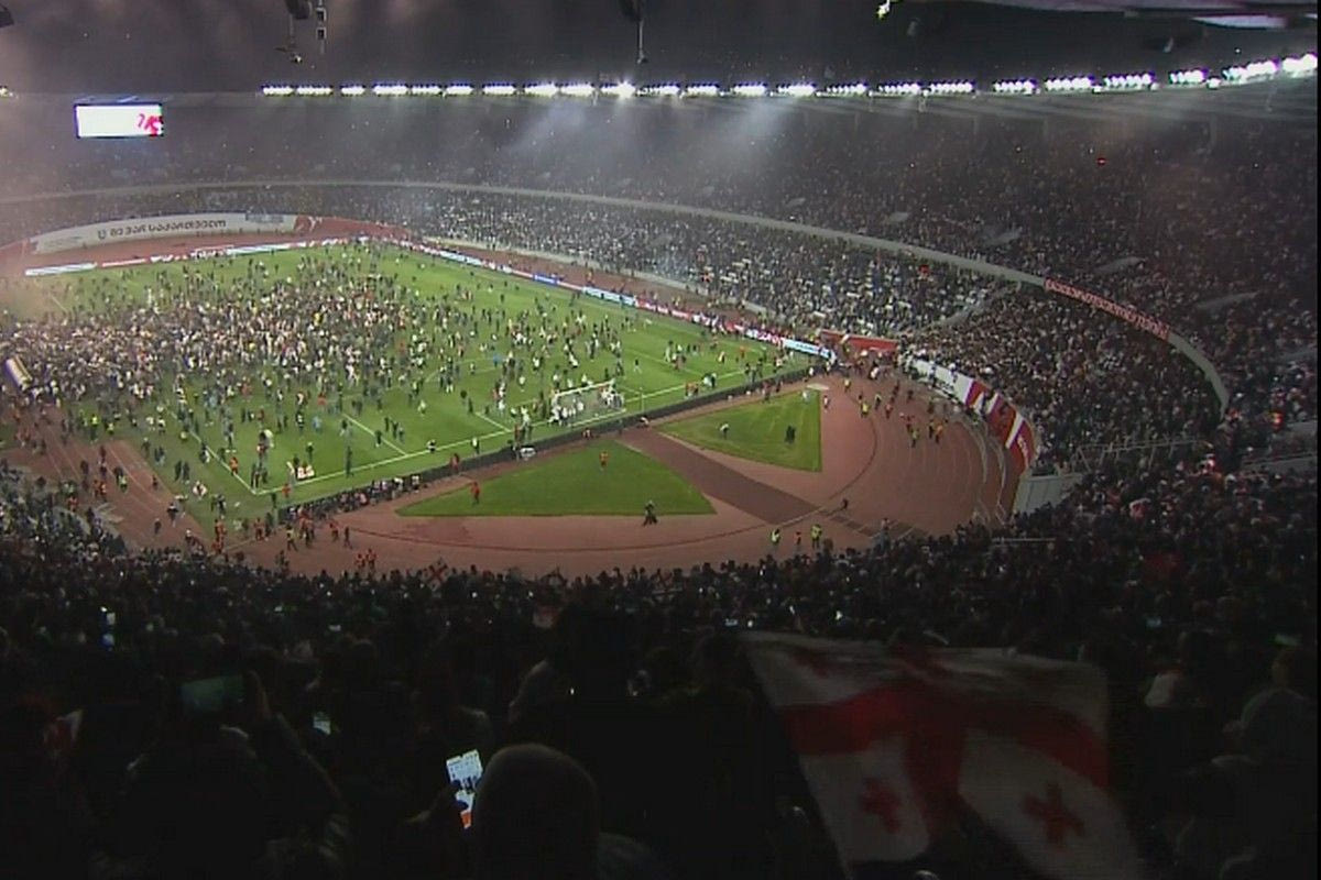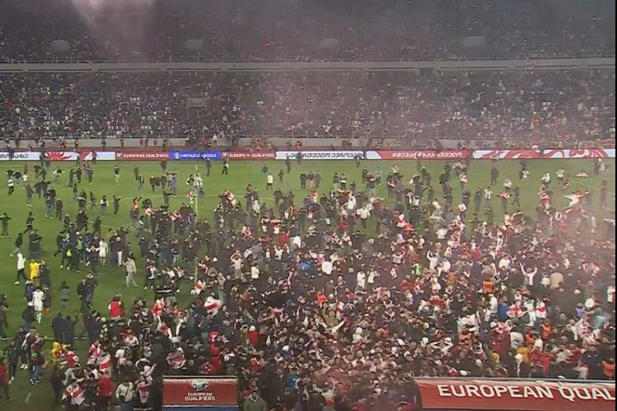 Η Εθνική Γεωργίας έκαμψε με 4-2 την αντίσταση της Ελλάδας στα πέναλτι και πήρε την πρόκριση στα τελικά του Euro για πρώτη φορά στην ιστορία της, γεγονός που ώθησε χιλιάδες οπαδούς της να μπουν στον αγωνιστικό χώρο για να πανηγυρίσουν.