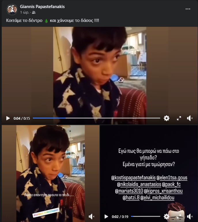Ο μικρός φίλος του ΠΑΟΚ, Γιάννης Παπαστεφανάκης, που είχε συγκλονίσει όλους τους Έλληνες φιλάθλους στον τελικό στο Πανθεσσαλικό, αλλά και στο παιχνίδι με την ΑΕΚ στην OPAP Arena, έστειλε ένα μήνυμα στα social media με αφορμή τις αποφάσεις της κυβέρνησης να κλείσει τα γήπεδα λόγω των τελευταίων περιστατικών βίας και αναρωτιέται γιατί τον τιμώρησαν.