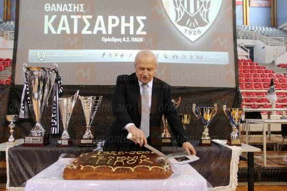 Ο πρόεδρος του Ερασιτέχνη ΠΑΟΚ, Θανάσης Κατσαρής κόβει την πίτα του συλλόγου