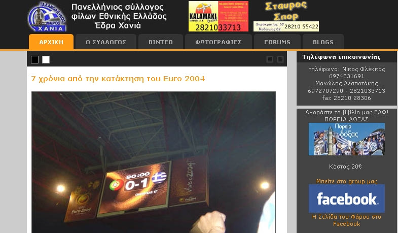 Ανακοίνωση, με την οποία μνημονεύει την κατάκτηση του Euro 2004 από την Εθνική Ελλάδος, εξέδωσε ο "Γαλανόλευκος Φάρος", ο πρώτος επίσημος σύλλογος φίλων Εθνικής Ελλάδος.