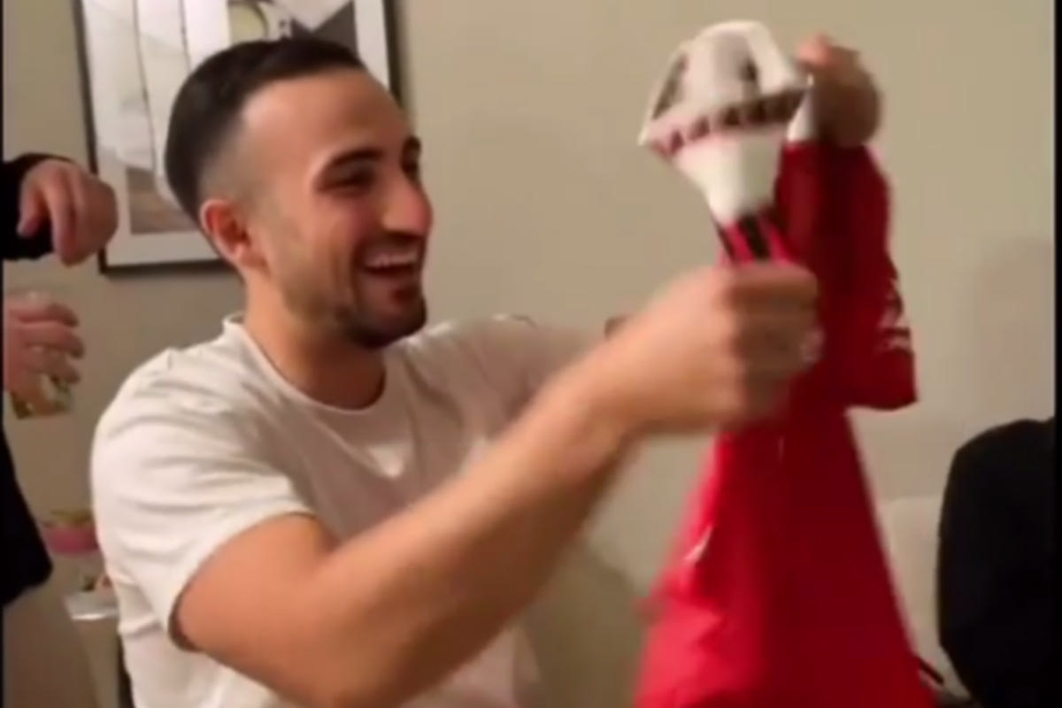 Φίλαθλος της Γιουνάιτεντ χαίρεται με τη φανέλα-δώρο των φίλων του