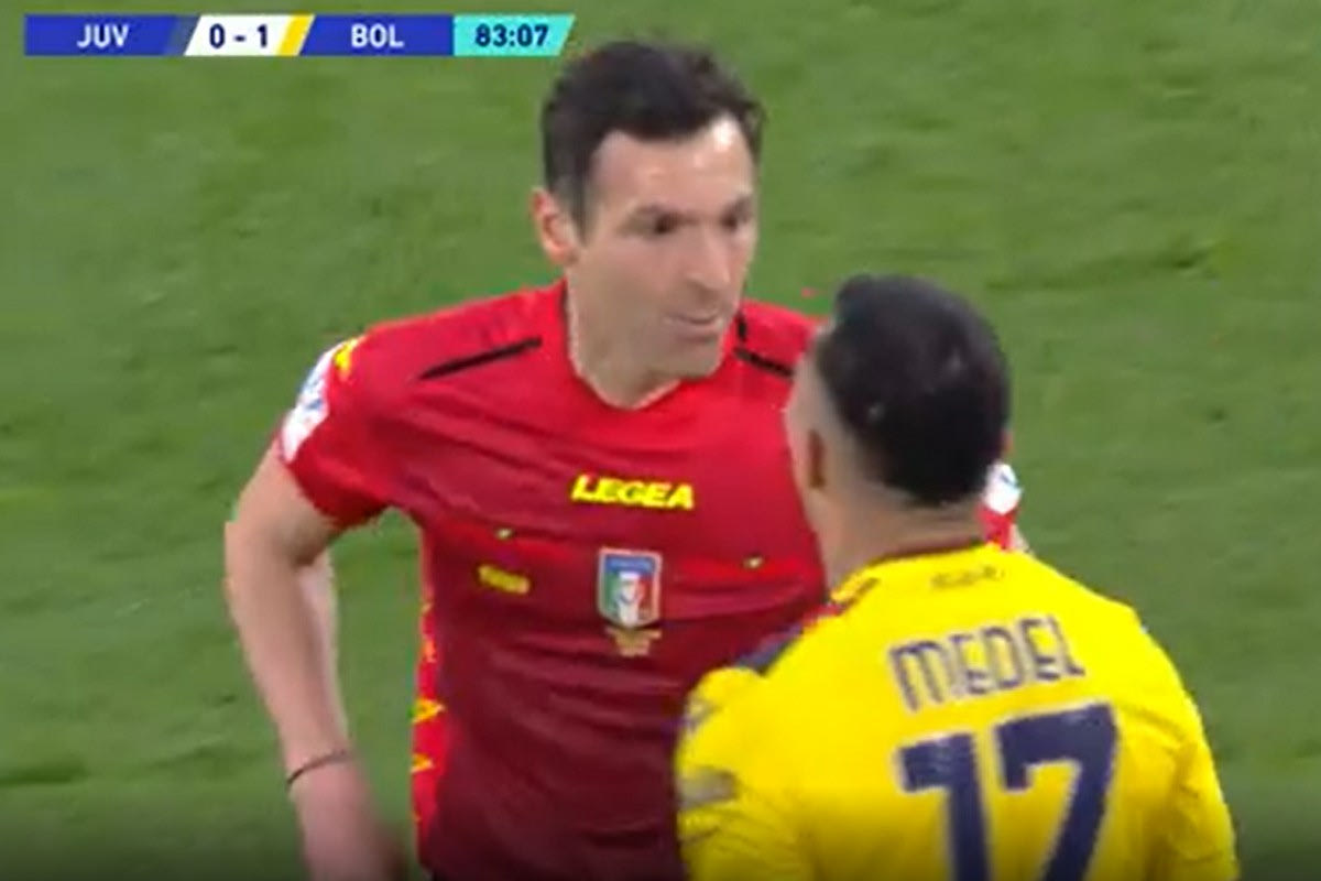 Σαν να μην έφτανε αυτό, η απόφαση του Ρόκι έκανε έξαλλο τον Γκάρι Μεδέλ με αποτέλεσμα να δεχτεί κίτρινη κάρτα για διαμαρτυρία στο ίδιο λεπτό, με τον Χιλιανό μέσο να συνεχίζει με έντονο ύφος να αμφισβητεί την ορθότητα της απόφασης του διαιτητή και να αντικρίζει δεύτερη κίτρινη κάρτα μέσα σε πέντε δευτερόλεπτα, για να μείνει έτσι η Μπολόνια με 9 παίκτες και να χάσει το τρίποντο στο φινάλε.