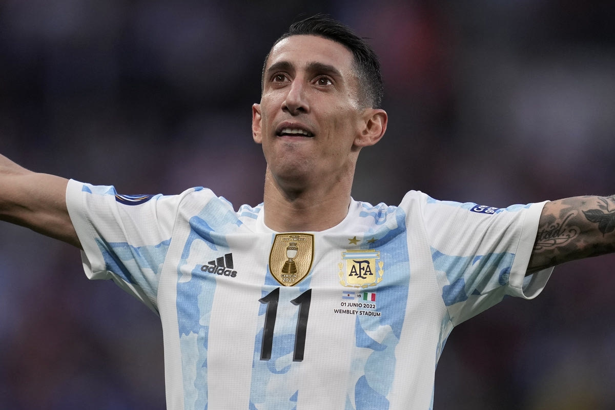 Ο Άνχελ ντι Μαρία πανηγυρίζει αφού σκόραρε με τη φανέλα της εθνικής Αργεντινής στο Finallissima