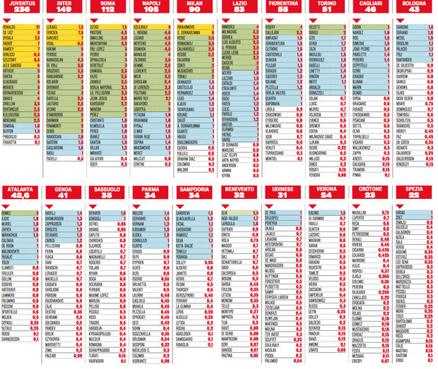 Η Gazzetta dello Sport δημοσίευσε – όπως κάνει παραδοσιακά με τη λήξη κάθε θερινής μεταγραφικής περιόδου – τις ετήσιες απολαβές όλων των παικτών της Serie A, αλλά και συνολικά κάθε ομάδας της πρώτης κατηγορίας του ιταλικού πρωταθλήματος.
