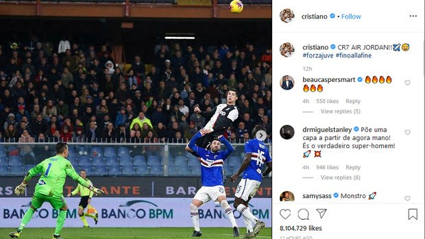 Ο ίδιος ο φορ της Γιουβέντους ανέβασε μάλιστα φωτογραφία στον επίσημο λογαριασμό του στο Instagram την ώρα της… πτήσης του, για να συγκρίνει τον εαυτό του με τον θρύλο του NBA, Μάικλ Τζόρνταν, γράφοντας: “CR7 AIR JORDAN!!”
