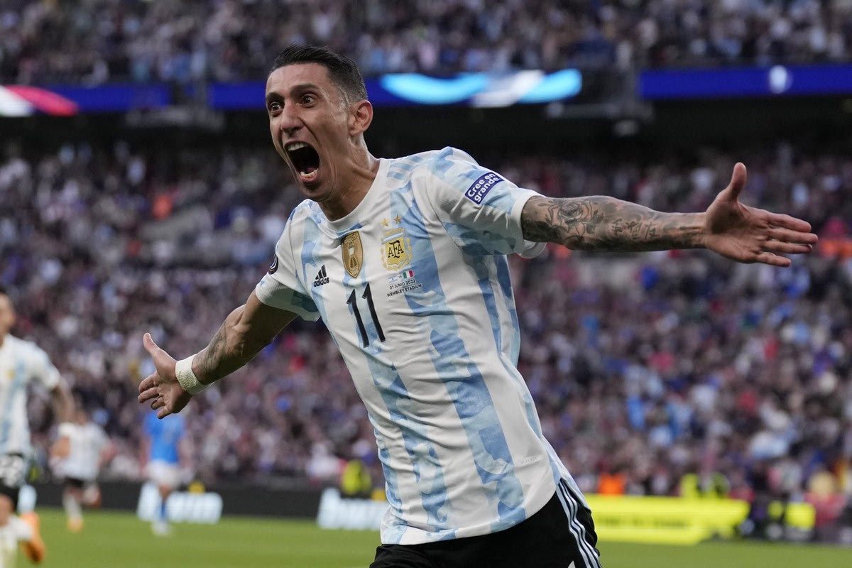 Ο Άνχελ Ντι Μαρία πανηγυρίζει γκολ με τη φανέλα της Αργεντινής κόντρα στην Ιταλία στο Finalissima | 1 Ιουνίου 2022 @2022 Matt Dunham/AP IMAGES
