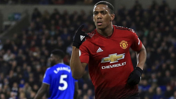 Manchester United forward Anthony Martial celebrates his goal against Cardiff City during the English Premier League match between Cardiff City and Manchester United at the Cardiff City Stadium in Cardiff, Wales, Saturday Dec. 22, 2018. (AP Photo/ Jon Super) AP