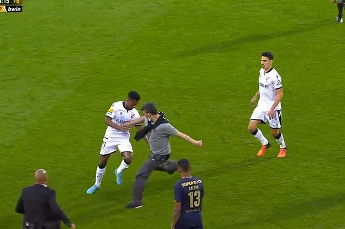 Οπαδός εισέβαλε στον αγωνιστικό χώρο κατά τη διάρκεια του Γκιμαράες - Πόρτο, πλησίασε τον Ροσίνια και τον Ντα Λουζ και άρχισε να τους κλωτσάει.