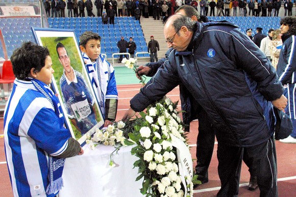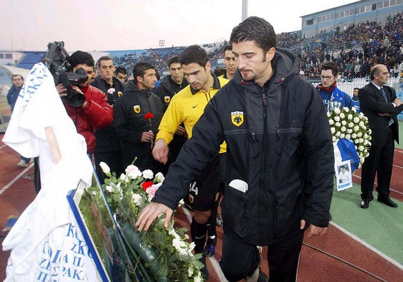 Ηλίας Πουρσανίδης και Γιώργος Ανατολάκης τιμούν τη μνήμη του Γιόβαν στο ματς Ηρακλής – Ολυμπιακός (3/2/2002)