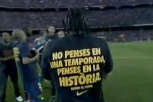 Λίγο αργότερα ήρθε η ώρα για τις παραδοσιακές δηλώσεις των ποδοσφαιριστών προς τους φιλάθλους της ομάδας. Ενας, ένας έπαιρνε το μικρόφωνο λέγοντας δυο κουβέντες από το κέντρο του γηπέδου με το κλίμα να φορτίζεται όταν μίλησε ο Ινιέστα.