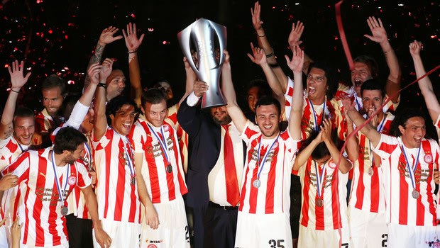Ολυμπιακός – Ερυθρός Αστέρας 2-1Γήπεδο: Γ. Καραϊσκάκης Διαιτητής: Μιχαήλ Κουκουλάκης Βοηθοί: Χ. Ακρίβος, Φ. Ελευθερίου Ολυμπιακός (Βαλβέρδε): Δασκαλάκης (Μέγκιερι 31′, Κάρολ 62′), Μανιάτης (Μακούν 46′), Μέλμπεργκ (Παπάζογλου 46′), Α. Παπαδόπουλος (Ποτουρίδης 46′), Μοδέστο (Τοροσίδης 46′), Ορμπάιθ (Φέισα 46′), Ιμπαγάσα (Φουστέρ 46′), Μιραλάς (Φετφατζίδης 46′), Καζίμ-Ρίτσαρντς (Αμπντούν 46′), Μόνχε (Χολέμπας 46′), Ντιόγκο (Τζεμπούρ). Ερυθρός Αστέρας (Προσινέτσκι): Μπαΐκοβιτς (Βέσιτς 46′), Τόσιτς (Μκασίμοβιτς 83′), Πασέκο (Ντουρίκοβιτς 57′), Μιλιβόγιεβιτς, Μιλούνοβιτς (Οζέγκοβιτς 57′), Μέντες Καντού, Πέροβιτς (Ασαμόα 64′), Μίριτς (Στοίκοβιτς), Βέσοβιτς, Μιχαήλοβιτς, Πέτκοβιτς (Μλαντένοβιτς 83′) Σκόρερ: Ντιόγκο 20′, Ιμπαγάσα 29′ / Οζέγκοβιτς 75′ Κίτρινες: Μιλιβόγιεβιτς 8′ |